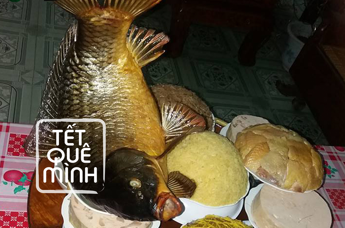 Món quan trọng và đặc biệt nhất của mâm cỗ nằm ở con cá chép được đặt ở vị trí cao nhất, trang trọng nhất. Cá chép rán còn nguyên vảy vàng óng ánh, tượng trưng cho việc hóa rồng. Đây được xem là lời chúc đến những bô lão sống trường thọ, bách niên giai lão.
