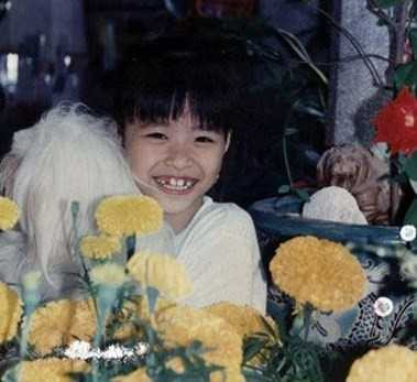 Đông Nhi 'sún răng' cười toe toét khi được bố chụp ảnh Tết khi còn bé.