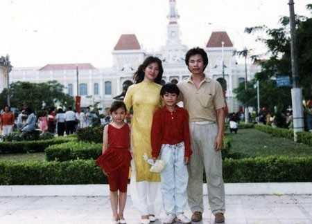 Gia đình Thu Thủy có một bức ảnh 'đúng chuẩn' Tết Sài Gòn xưa trước UBND TP.HCM cách đây chục năm về trước...