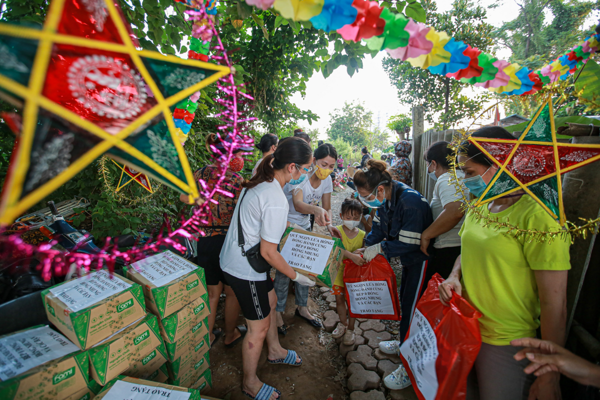 Bé Nguyễn Bảo Trang (6 tuổi) lần đầu được sở hữu chiếc đèn ông sao. Mặc dù đủ tuổi nhưng do hoàn cảnh gia đình khó khăn nên em chưa được đến lớp. Chị Nguyễn Thị Thu (35 tuổi, mẹ bé Nhi) cho biết cuộc sống thời gian qua rất vất vả. "Sắp đến Trung thu, cháu có gói quà như này là vui lắm, năm nay gia đình không có tiền mua đồ cho cháu, cũng không đi chơi đâu. Được mọi người quan tâm, tôi thấy ấm lòng", chị Thu xúc động nói.