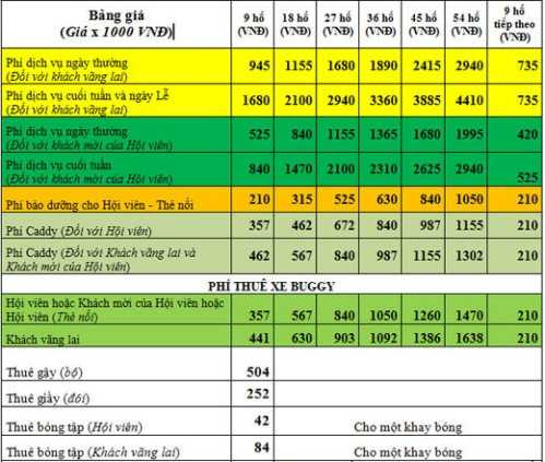 | Bảng giá chơi golf tại sân golf Tam Đảo |