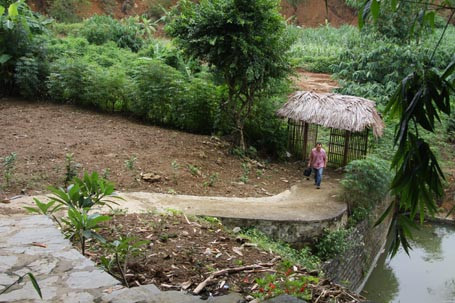 Loanh quanh mãi ở kho mìn (nơi chứa mìn để thi công thủy điện Hòa Bình ngày trước), chúng tôi chưa tìm được đường vào sơn cốc nơi lão Dũng tu hành. Phải đến khi vào sát chân núi đá, chúng tôi mới phát hiện thấp thoáng phía sau rặng tre xanh mướt có một ngôi miếu nhỏ.