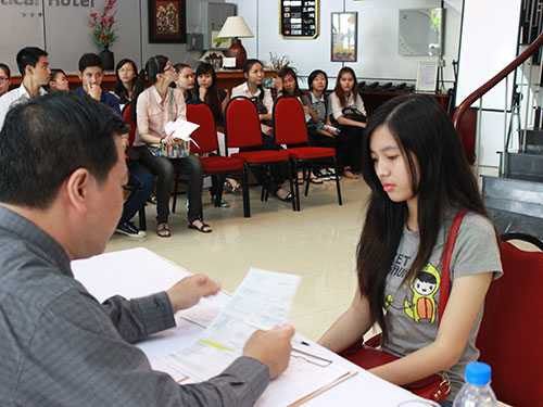 | Thí sinh tham gia phỏng vấn trong đợt tuyển sinh của Trường Trung cấp Du lịch và Khách sạn Saigontourist |