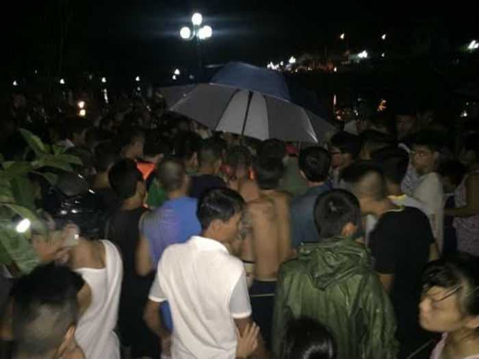 | Người dân địa phương đổ về hồ Bàu Sen theo dõi lực lượng cứu hộ tìm kiếm nạn nhân. |