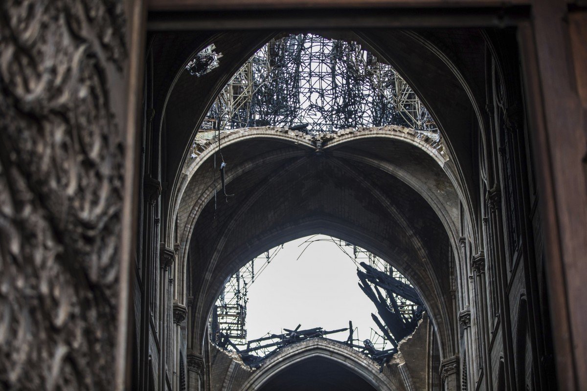 Nhà thờ Đức Bà Paris tan hoang sau trận hỏa hoạn hôm 15/4. (Ảnh: AP)