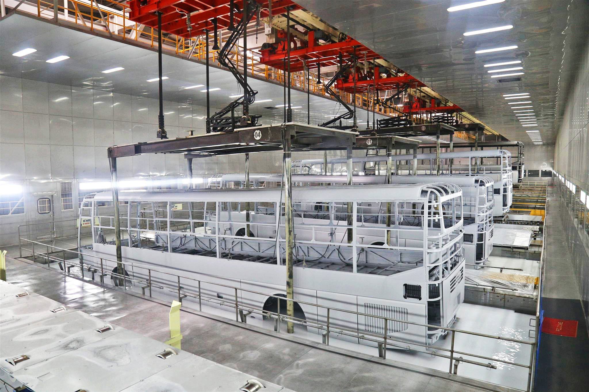 Dây chuyền sơn tĩnh điện tại nhà máy bus Thaco