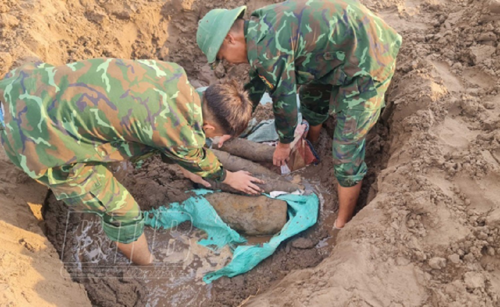 Sau khi kiểm tra hiện trường, xác định số bom, đạn trên do không lực Hoa Kỳ thả xuống địa phương vào giai đoạn chiến tranh phá hoại miền Bắc. Vật nổ đang ở trạng thái mất an toàn, rất nguy hiểm đến tính mạng, tài sản của các đơn vị đang thi công công trình.