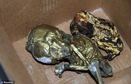 | Xác thai nhi bị sấy khô, sau đó dát vàng |