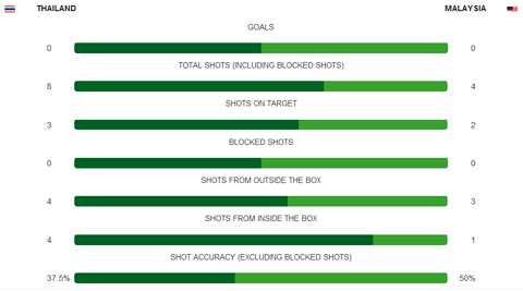 30': SÚT XA... Tiền vệ Sarach Yooyen của Thái Lan vừa giải quyết sự bế tắc bằng một pha sút xa về phía khung thành Malaysia. Tuy nhiên, bóng đi nhẹ và thủ thành Marlias đã bắt gọn.