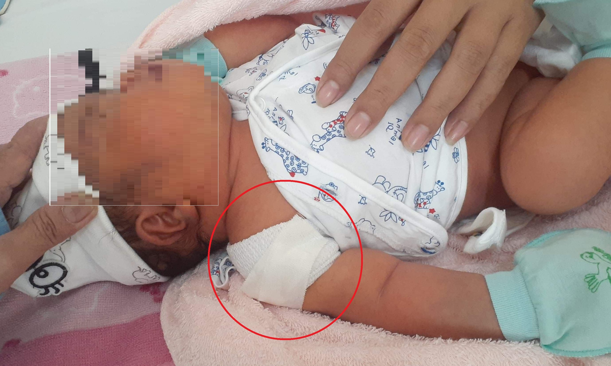 Đến 18h, chị Liễu sinh được bé gái nặng hơn 4,2kg. Người bé tím tái. Ít giờ sau, gia đình lo lắng khi phát hiện bé gái không cử động được cánh tay phải như những trẻ sơ sinh khác