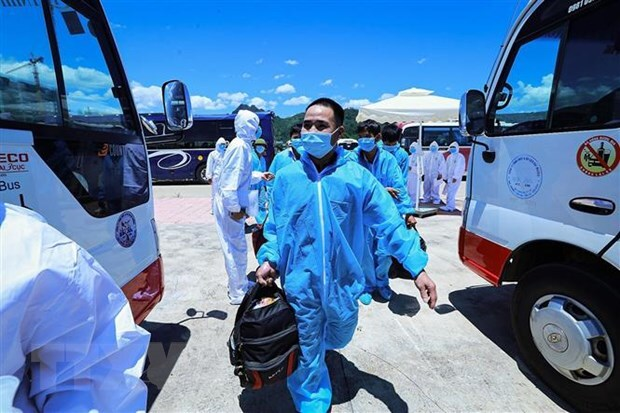 Lao động từ Bắc Giang lên xe trở về địa phương tiếp tục quá trình theo dõi COVID-19 theo đúng quy định của Bộ Y tế.