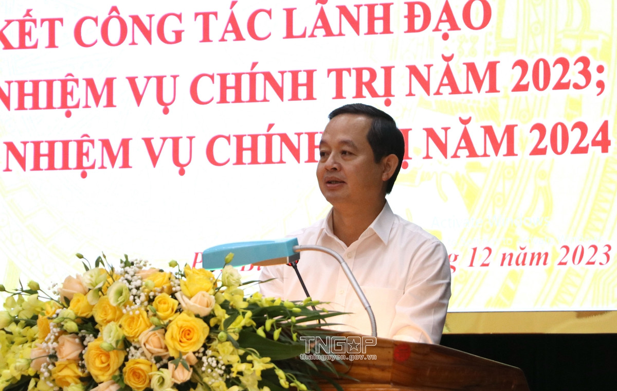 Phát biểu chỉ đạo, ông Phạm Hoàng Sơn - Phó Bí thư Thường trực Tỉnh ủy, Chủ tịch HĐND tỉnh Thái Nguyên ghi nhận, đánh giá cao và biểu dương những thành tích Đảng bộ huyện Phú Bình đã đạt được trong năm 2023.