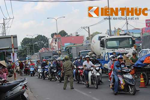 Vụ tai nạn xảy ra vào giờ cao điểm nên tình hình giao thông qua khu vực này bị ùn tắc.