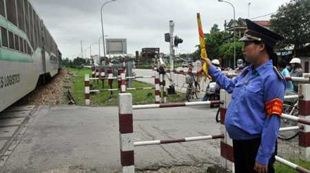 | Hằng ngày chị Nhàn vẫn đều đặn gác chắn |