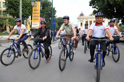 (VTC News) - Thái tử Đan Mạch Frederik chiều qua đạp xe gần hồ Hoàn Kiếm cùng đông đảo thanh niên Hà Nội nhằm kêu gọi bảo vệ môi trường.