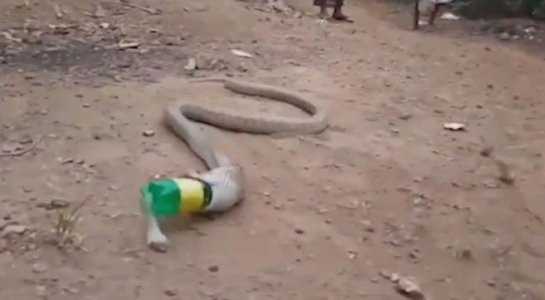 Những hình ảnh trong đoạn video được Daily Mail đăng tải cho thấy con rắn đã phải gồng mình, dồn hết sức để nôn ra chai nhựa mà nó không may nuốt nhầm vào bụng. Sau bao nỗ lực không biết mệt mỏi, cuối cùng con rắn đã đẩy được dị vật có kích thước còn lớn hơn cơ thể ra khỏi bụng mình.