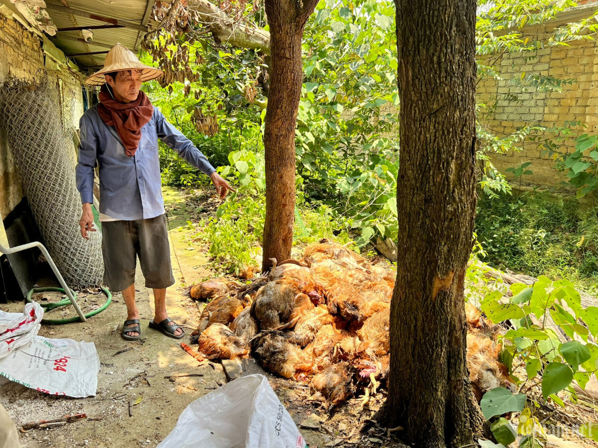Chưa định thần khi gần 1.000 con gà chết vì mất điện, ông Chu Văn Dũng (SN 1962, trú tại xã Thạch Hòa, huyện Thạch Thất, Hà Nội) kể: "10h ngày 1/6, khu vực trại gà bị mất điện. Tôi đã gọi lên người phụ trách điện của thôn để hỏi khi nào có điện, lúc đầu họ bảo 13h. Đến 13h chưa thấy, tôi gọi tiếp thì họ lại bảo 14 - 15h… Tôi gọi liên tục không biết bao nhiêu cuộc, vậy mà 21h mới có điện. Chỉ nửa ngày, hơn 1.000 con gà sốc nhiệt lăn đùng ra chết".