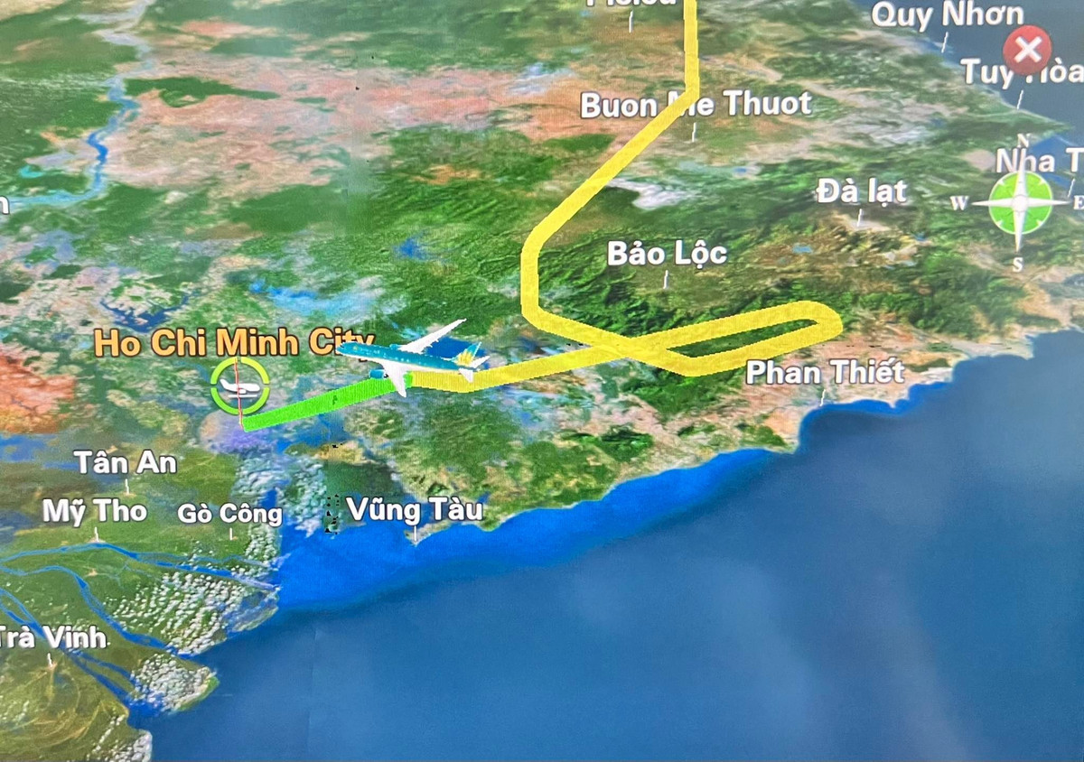 Chuyến bay Vietnam Airlines số hiệu VN215 ngày 25/5 phải bay vòng qua Đà Lạt, Phan Thiết rồi mới có thể xuống sân bay Tân Sơn Nhất.