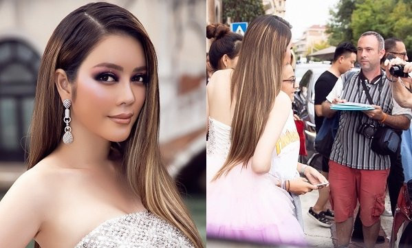 Vừa kết thúc chuyến công du sang Romania trong vai trò Lãnh dự danh dự, Lý Nhã Kỳ cùng ê kíp của mình lập tức bay sang Ý để tham dự LHP. Diện bộ váy ombre màu tím nhạt của NTK Đỗ Long, nữ diễn viên thu hút sự chú ý từ truyền thông và khán giả.