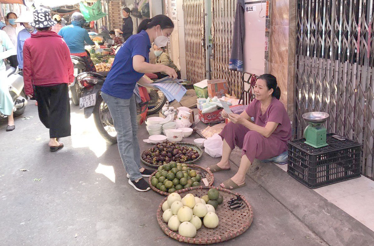 Buổi ra quân tuyên truyền về BHXH tự nguyện, BHYT hộ gia đình của BHXH quận Ngô Quyền.