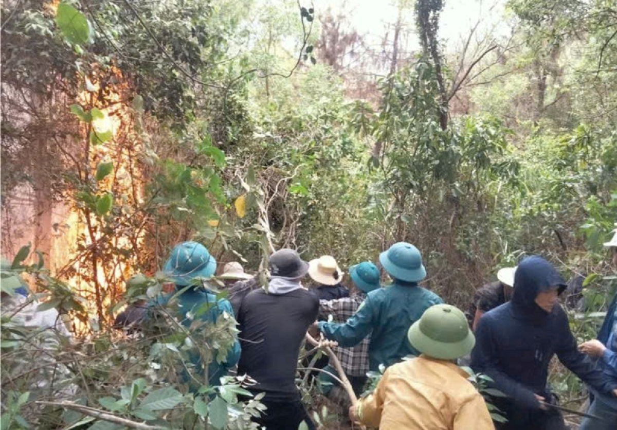 Nhận tin báo, cán bộ Ban quản lý rừng phòng hộ huyện Nghi Lộc phối hợp lực lượng công an, quân sự cùng hàng trăm người dân nhanh chóng đến hiện trường dập lửa.