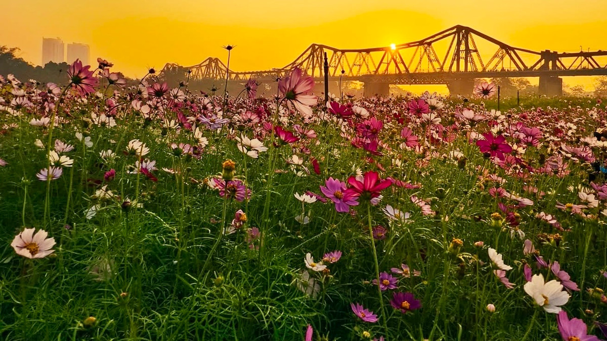 Thời gian gần đây, khu vực dưới chân cầu Long Biên thuộc phường Phúc Xá, Hà Nội trở thành điểm đến quen thuộc của người dân và du khách. Những thảm hoa cánh bướm nở rộ, xen kẽ với các luống cải vàng tạo nên không gian tươi sáng, góp phần làm thay đổi diện mạo khu vực ven sông Hồng.