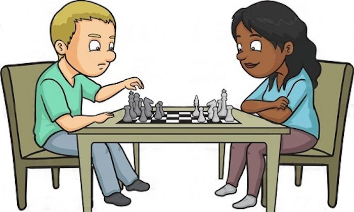 - Hôm nay, con và bạn gái cùng đánh cờ. Chơi được mấy ván thì cô ấy giận con.