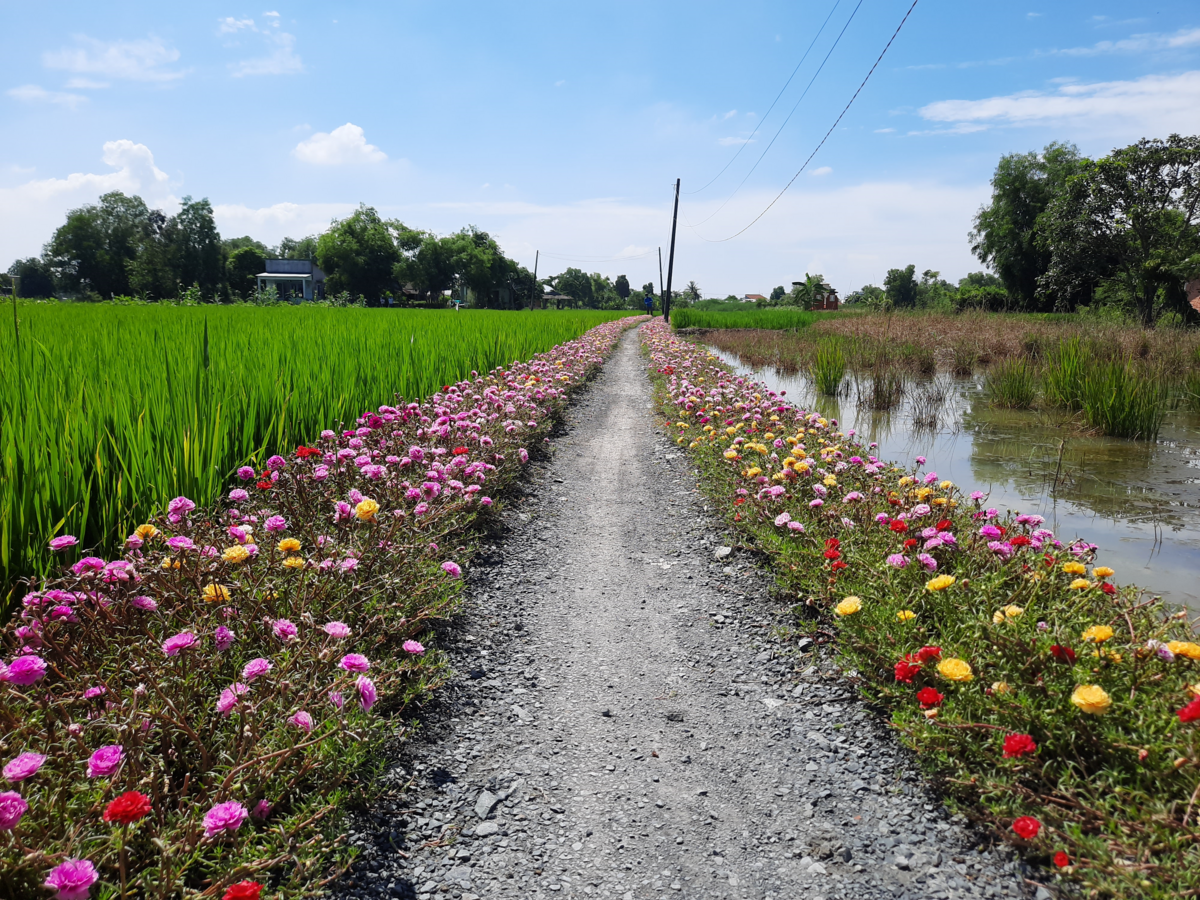 Mặc dù có nhiều tuyến đường đã trải bê tông, nhưng người dân nơi vẫn tận dụng phần đất còn lại 2 bên ven đường để trồng thêm hoa, góp phần giảm thiểu tối đa việc vứt rác bừa bãi.