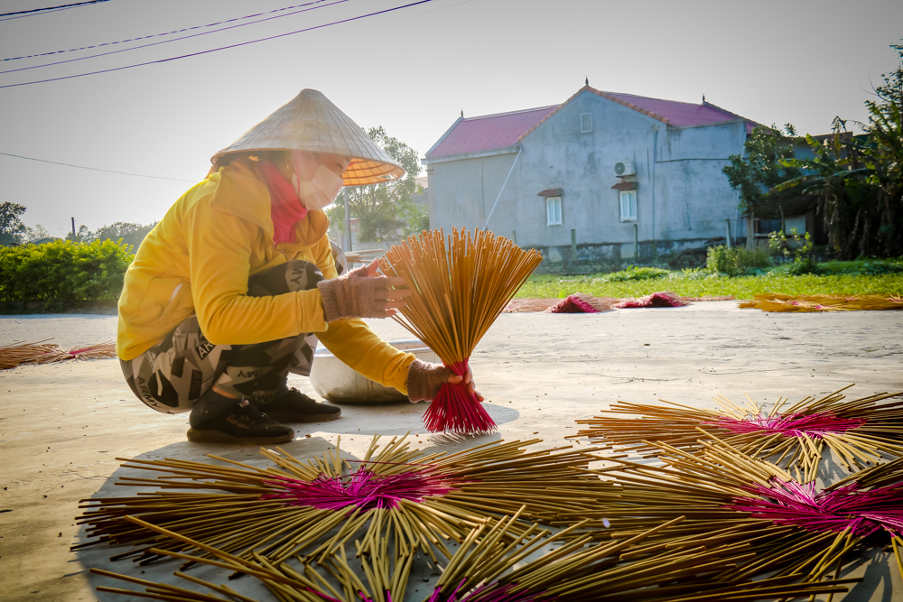 Hiện nay, nghề làm hương đang tạo việc làm ổn định cho hàng trăm lao động tại chỗ, chủ yếu là phụ nữ. Nghề làm hương khá nhẹ nhàng, người già, thanh niên cũng có thể tranh thủ thời gian làm để có thêm thu nhập.