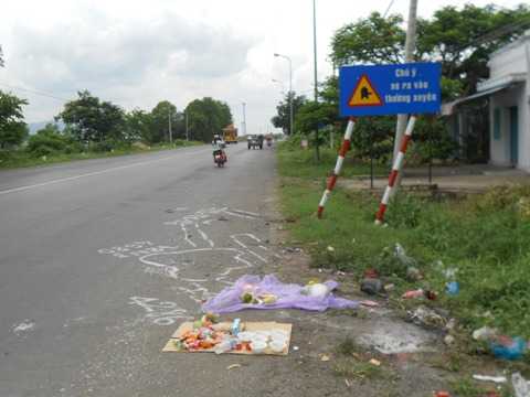 Một quang cảnh tan hoang hiện ra, những mảnh vỡ của mũ bảo hiểm văng khắp mặt đường, rất nhiều đồ đạc, quần áo của nạn nhân còn vương lại trên đường.