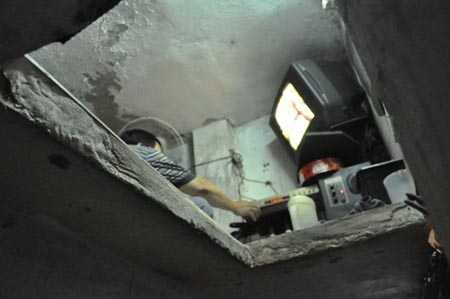 Đang tiếp chuyện khách bỗng câu chuyện bị cắt ngang, trên trần nhà các mảng vôi vữa rơi lả tả. Anh Xuân nói như giải thích: “Bên trên cũng có người ở, người ta đi lại mạnh chân, vôi vữa xây bao năm rồi nên dễ bục ra lắm. Không những thế bên trên người ta tắm rửa khiến nước thấm qua tường, ẩm mốc đến khổ”.