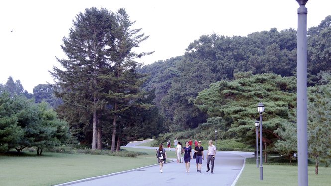 Trên đường đến, xe chở chúng tôi đỗ ở điểm cách ngôi nhà non cây số, mọi người dạo bộ trên con đường rải nhựa rộng và sạch tinh tươm. Vừa mới bước vào, người hướng dẫn Choe Un Mi nhắc chúng tôi phải tuyệt đối giữ trật tự vì là nơi tuyệt đối tôn nghiêm.