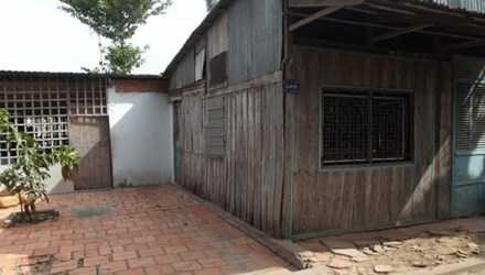 | Ngôi nhà bằng gỗ đơn sơ của gia đình Dương - Nguồn ảnh: Tiền Phong |