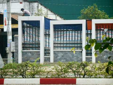 | Công nhân dựng lại bạt che hiện trường chiều 10/8 |