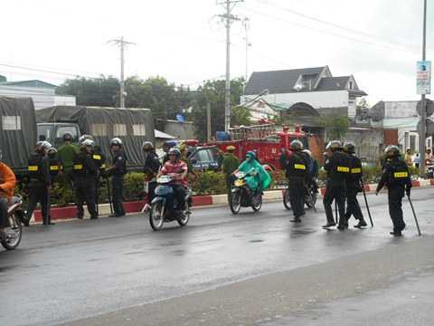 Hàng trăm cảnh sát tỉnh gồm các lực lượng giao thông, cơ động, 113, công an phường đã túc trực canh gác hai bên đường QL13, khu vực xã Minh Hưng, huyện Chơn Thành, Bình Phước. Nhiều xe chữa cháy, cứu thương có mặt tại hiện trường.