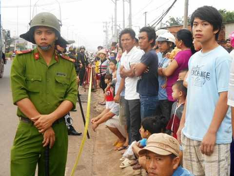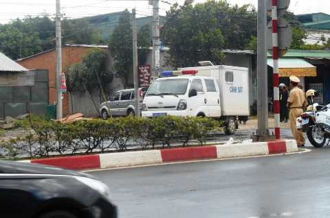 | Cảnh sát dựng hàng rào trước hiện trường |