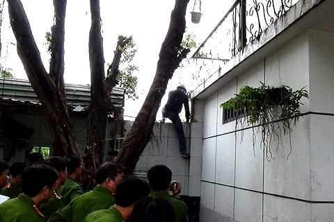 Dương leo lên trước. Tiến ở dưới cầm theo giỏ xách chứa hung khí, chuyển lên rồi leo lên sau bằng lối này.
