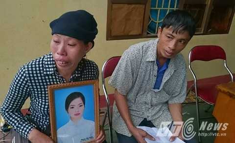 | Gia đình nạn nhân Phàn Thị Hoa mang theo di ảnh con đến phiên tòa |