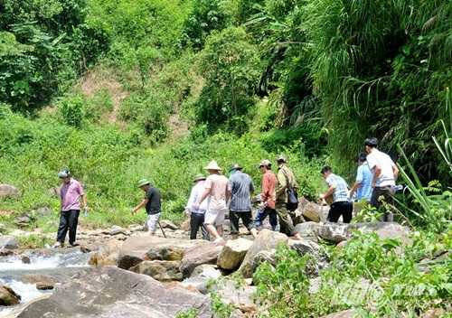 | Đường vào hiện trường vụ thảm sát phải đi qua nhiều khe suối, hiểm trở |