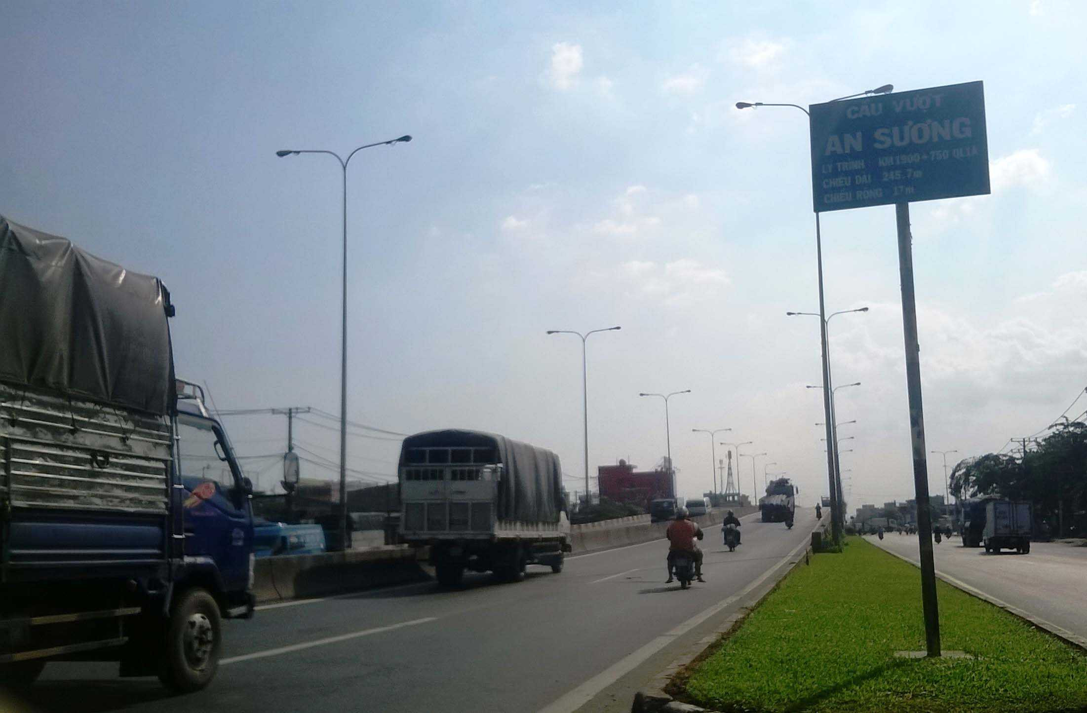 Cầu vượt An Sương nằm song hành trên quốc lộ 1A, nơi có lượng phương tiện lưu thông lớn