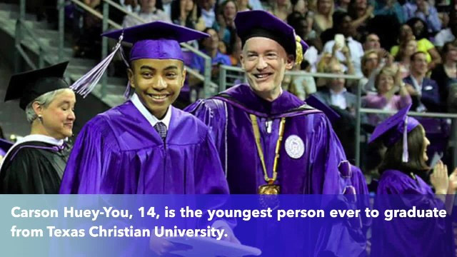 Carson Huey-You là sinh viên trẻ tuổi nhất từ trước tới nay được nhận bằng thạc sĩ của Đại học Texas Christian (TCU). Trước khi nhận bằng này năm 14 tuổi, Carson tốt nghiệp đại học.
