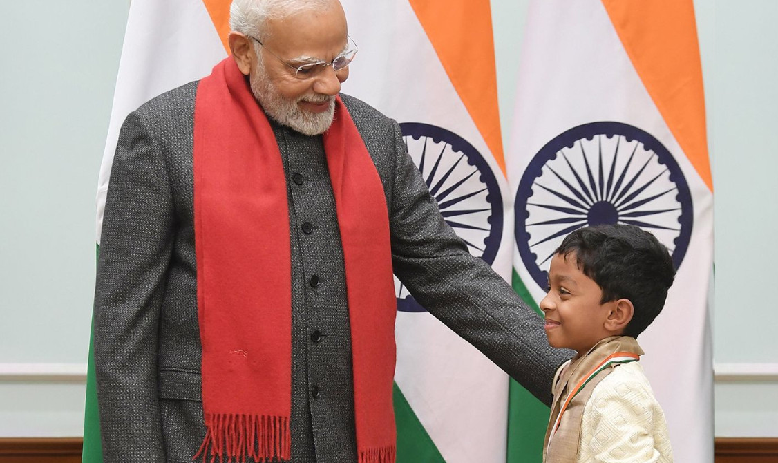 Thần đồng Rishi Shiv Prasanna cùng Thủ tưởng Ấn Độ Narendra Modi.