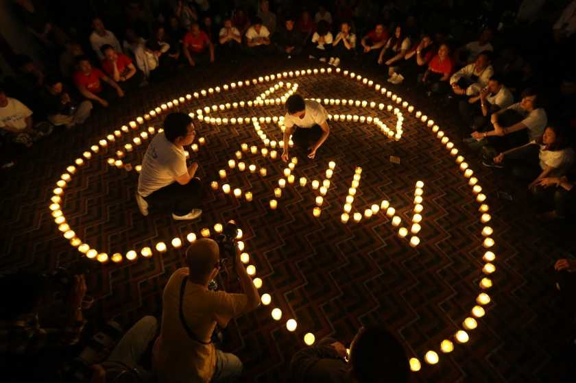 | Thắp nến cầu nguyện cho những hành khách trên MH370 vẫn đang mất tích |