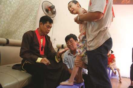 | Ông Lộc Em đang thực hiện việc chữa bệnh. |