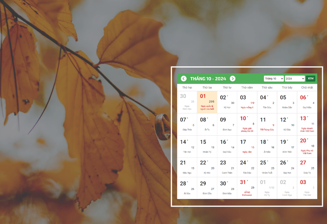 Tháng 10 có những ngày lễ nào đáng chú ý? (Ảnh chụp màn hình)