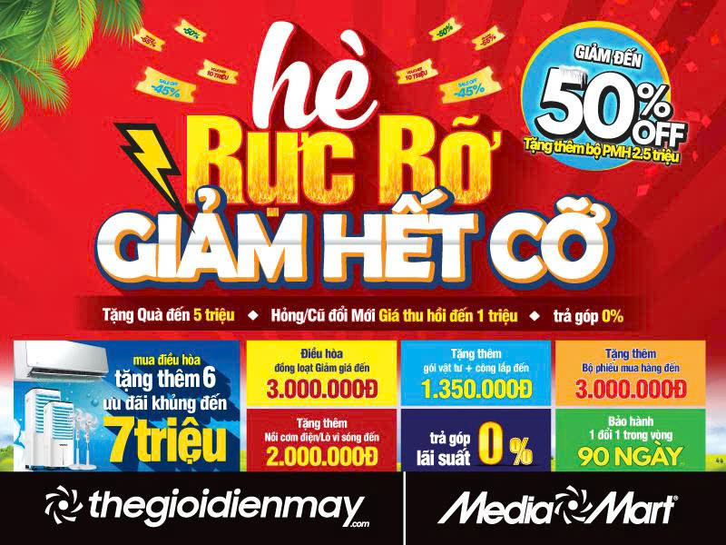Tháng 6 mở màn với cái nắng chói chang và nhu cầu “làm mới” không gian sống ngày càng rõ rệt. Đây cũng là thời điểm MediaMart khởi động chuỗi ưu đãi lớn nhất mùa hè với chương trình “Hè Rực Rỡ - Giảm Hết Cỡ” diễn ra từ 31/5 kéo dài đến hết 27/6.