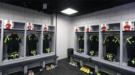 | Phòng thay đồ của ĐT Tây Ban Nha. Đội bóng xứ đấu bò sẽ ra sân với trang phục màuđen nhạt |