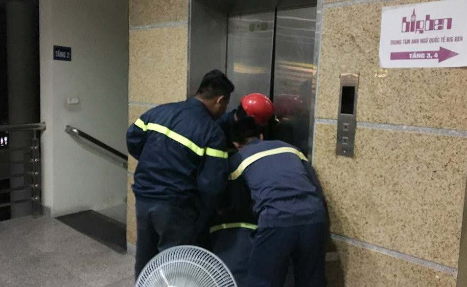 Ngay sau đó, lực lượng cảnh sát PCCC nhanh chóng có mặt tại hiện trường để giải cứu những người bị mắc kẹt. Bằng các phương tiện chuyên dụng và biện pháp nghiệp vụ, các chiến sỹ cảnh sát PCCC mở cửa thang máy, tháo nắp phía trên và lần lượt đưa người mắc kẹt ra ngoài.