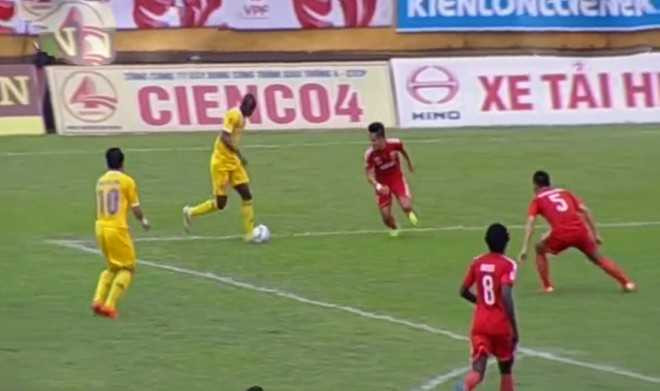 Đáng ngạc nhiên là chưa đầy 4 phút sau, hậu vệ Mạnh Hùng lại mắc sai lầm, phạm lỗi trong vòng cấm. Cũng giống như quả phạt đền đầu tiên, Abass không mắc bất cứ sai lầm nào, một lần nữa lập lại thế dẫn trước cho đội khách.