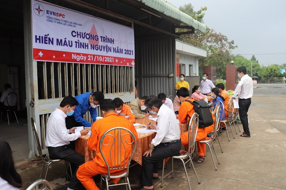 Công ty điện lực Long An tổ chức cho CBCNV hiến máu tình nguyện.